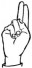 На ћирилици написано ДАРИЈА ЈОВЕЉИЋ састоји се из 13 слова [?]. Исписано ћириличном једноручном азбуком за глувонеме:
